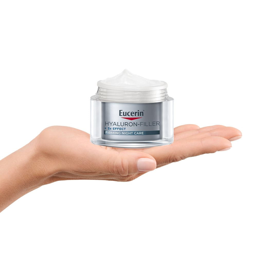 La piel se renueva durante la noche. Además de hidratar la piel, las cremas de noche contienen ingredientes que estimulan el proceso natural de reparación celular. En Eucerin Hyaluron-Filler 3x Effect Crema de Noche ese ingrediente activo es el Dexpantenol, que ayuda a favorecer el proceso natural de reparación durante la noche.